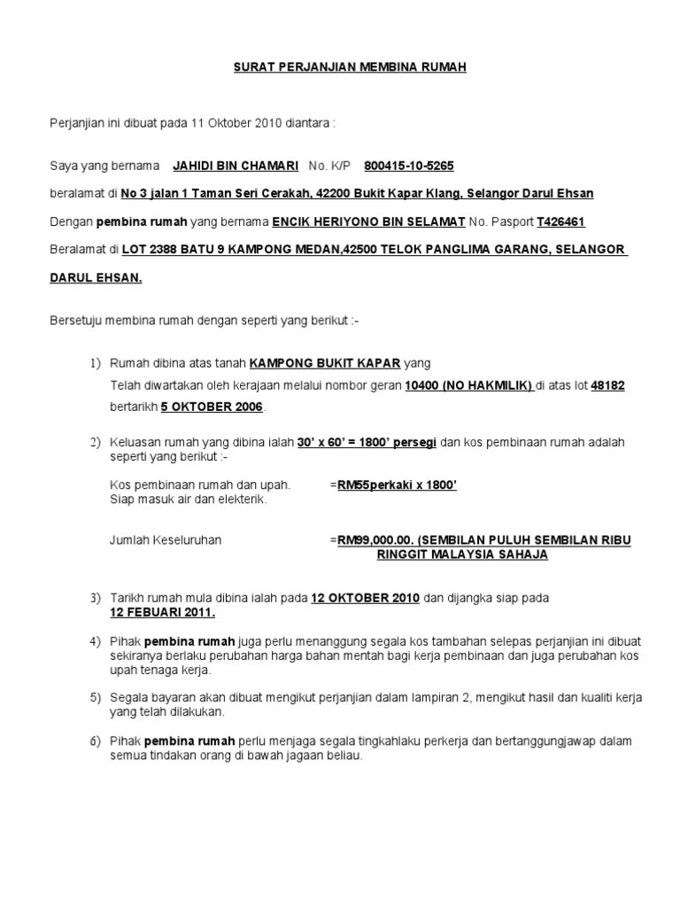Contoh Surat Perjanjian Bina Rumah Pdf : Contoh Surat Perjanjian Sewa Rumah Jual Beli Kenderaan Tanah Ubahsuai Rumah Kerja Sewa Kedai Jual Beli Haiwan Keptennews Com
